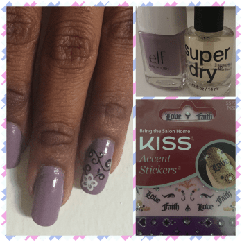 A while back, I bought some nail art. I was feeling extra creative, so I decided to try it out. YOLO 🙂 I forgot the store I got them from, but I know I picked them up in the clearance rack for about $3. I got an extra week of well-maintained looking nails by using my own polish and these stickers.